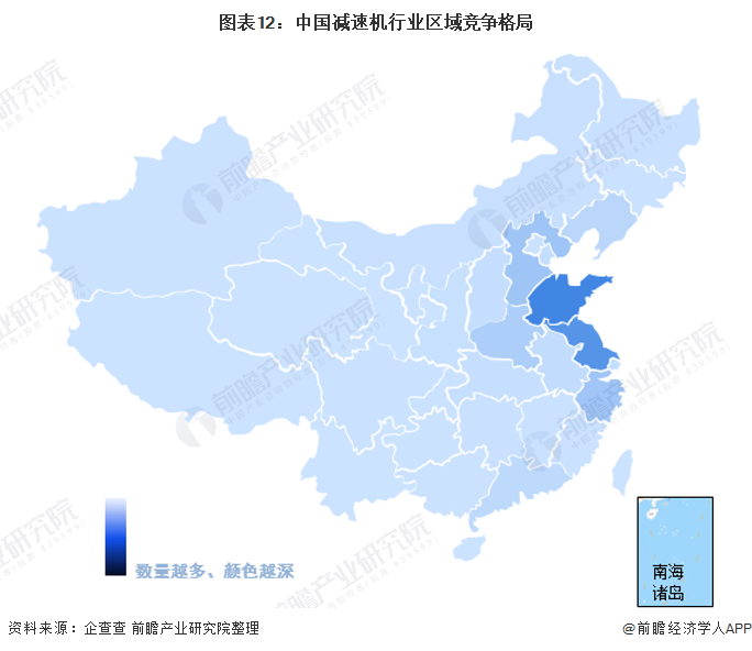 区域竞争格局:山东和江苏减速机企业数量名列前茅