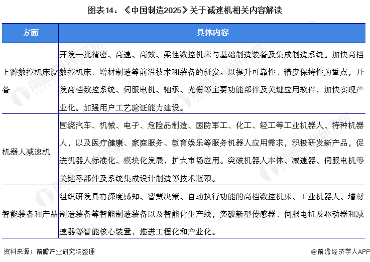 2015年5月国务院印发《中国制造2025》,全面部署实施制造强国战略,其中关于减速机相关政策如下: