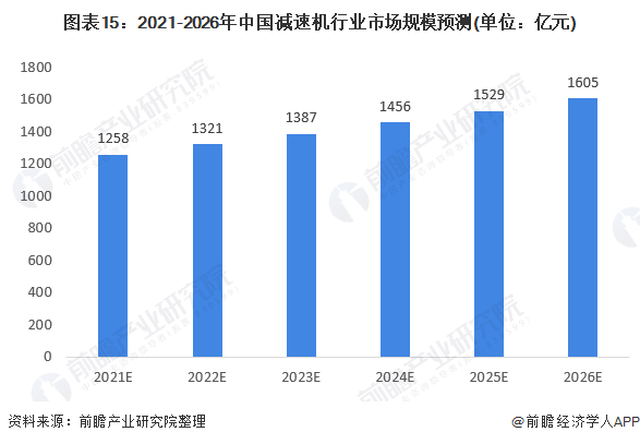 另一方面,在《中国制造2025》等相关政策文件的大力支持和宏观经济的稳步增长的背景下,工业自动化的趋势和环保、新能源发电等新兴行业的发展为减速机行业需求带来了新的增长点。前瞻预计2021-2026年中国减速机行业市场规模将会以5%的增长率增长,2026年市场规模将超过1600亿元。